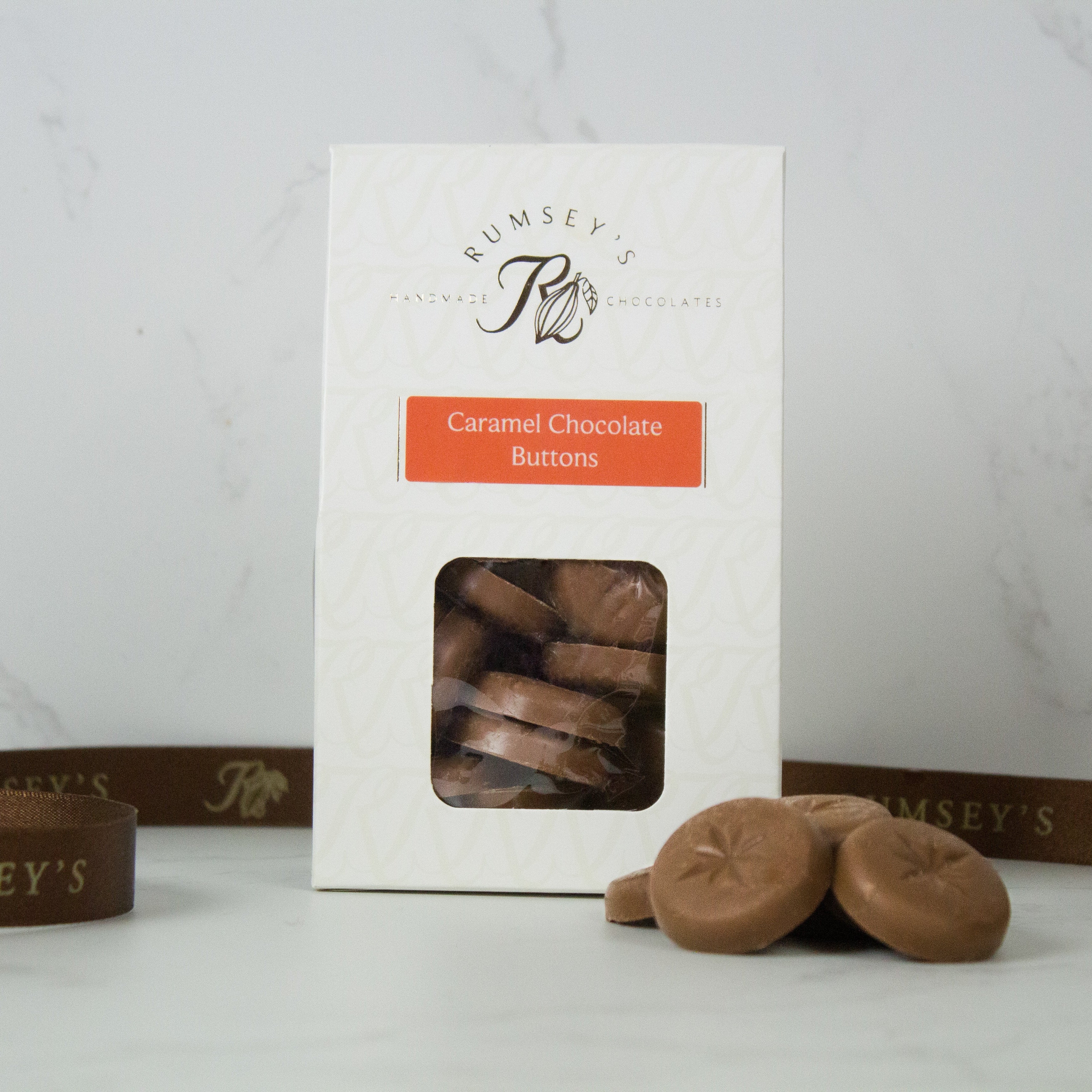 To create these creamy caramel chocolate disks our chefs carefully spread melted caramel chocolate into button size moulds, before hand-packing them into boxes ready to be opened for any occasion. Delicious!