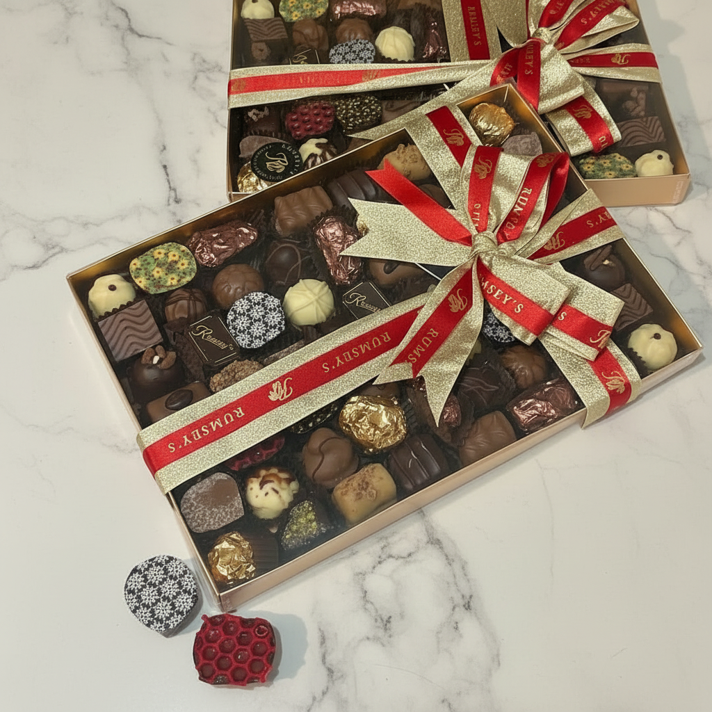 Indulge in a lavish selection of 60 Rumsey’s freshly handmade chocolates - a truly showstopping gift guaranteed to delight.