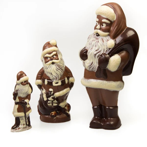 At Rumsey's we make four different sized Santas - all equally wonderful. Each on of our Father Christmas figurines are handcrafted and wrapped in our chocolateries and make deliciously memorable gifts. Small Santa 100g / Medium Santa 180g / Large Santa 400g /  Giant Santa 1.8kg