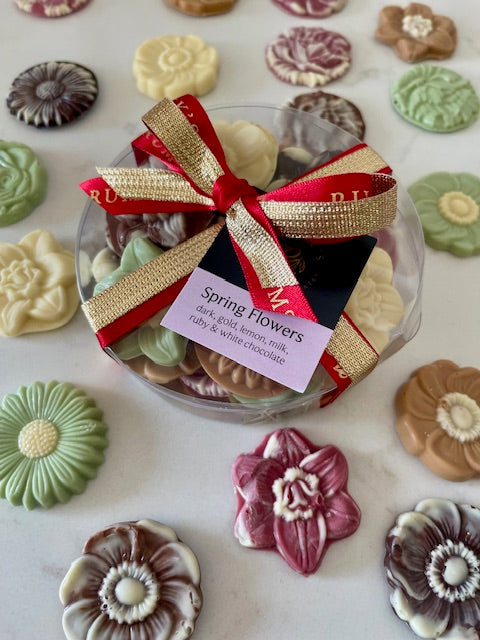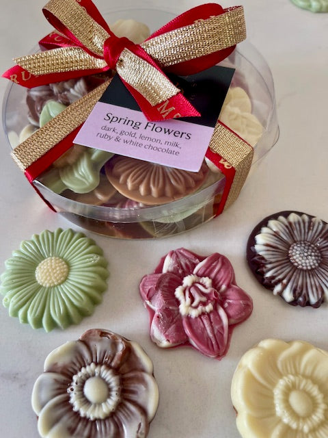 Each flower is uniquely handmade in milk, dark, golden caramel, white, strawberry and lemon chocolate. They are perhaps the most delicious bouquet you can send!